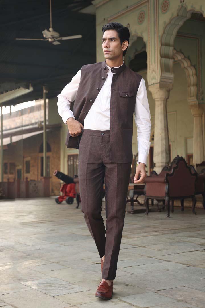 This 2 piece handcrafted Bandi Set is made using the finest Pure Linen, Breathable Inner Lining & Wooden Buttons.