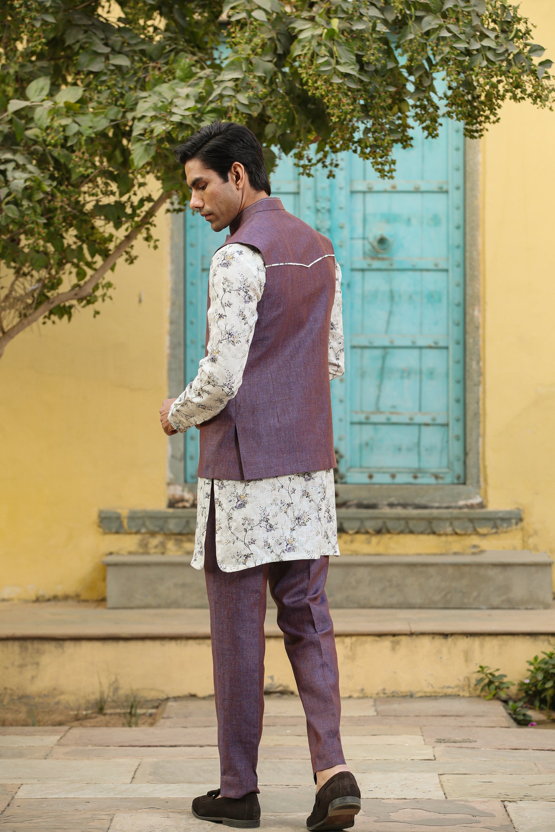This 3 piece Handcrafted Bandi & Kurta Set is made using the finest and Pure Linen & Natural Shell Buttons.